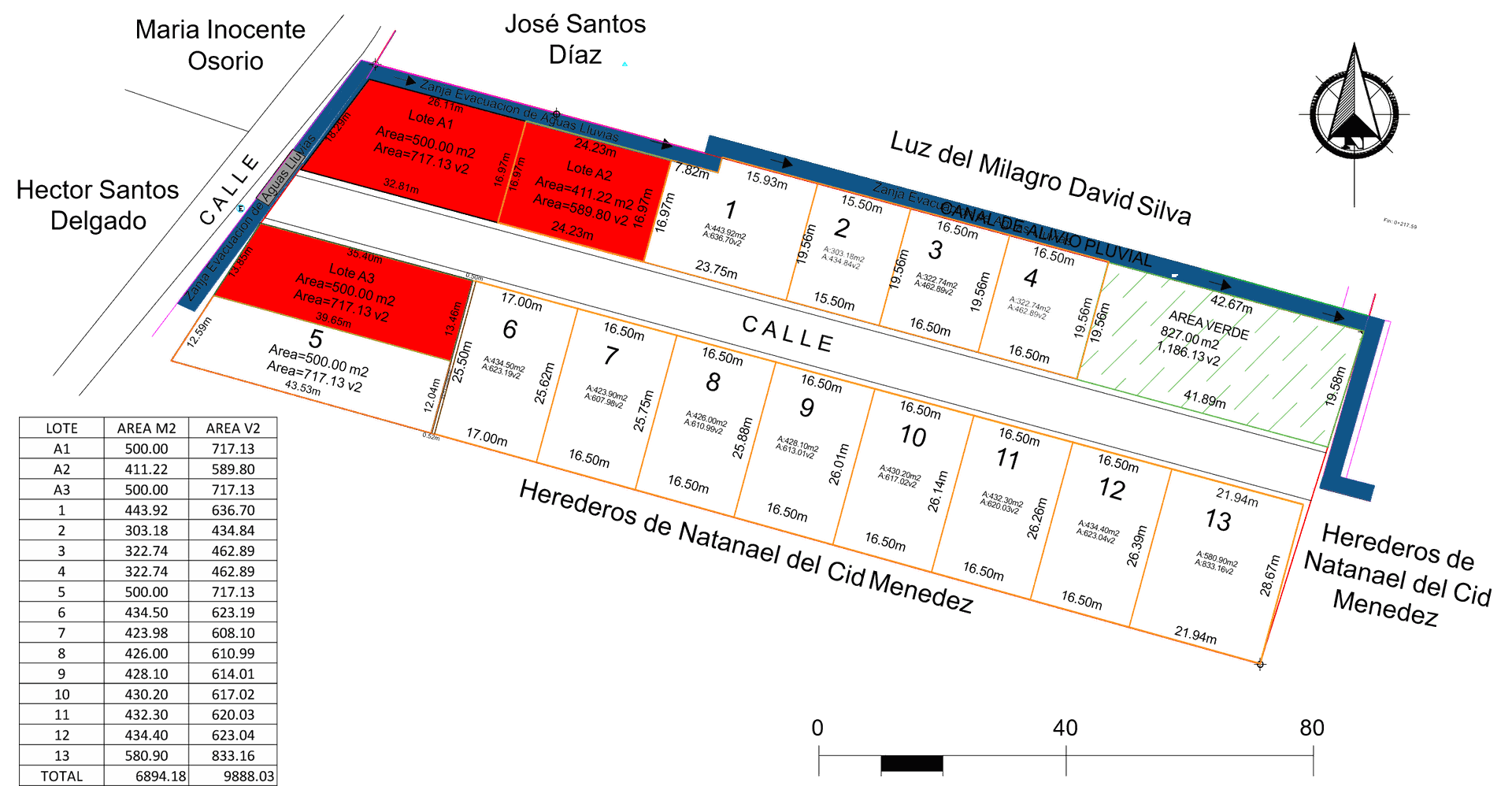 Lado Norte: 48.45 mts